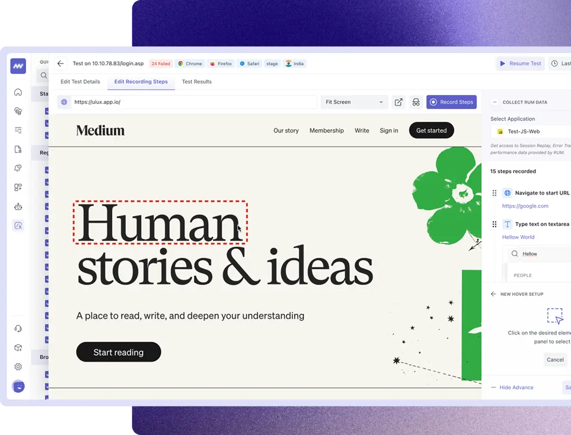 - Easily create tests with customized assertions using our fully hosted codeless web recorder.