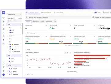 - Track performance metrics such as crashes, frontend errors, load times, and ANRs to enable proactive optimization.